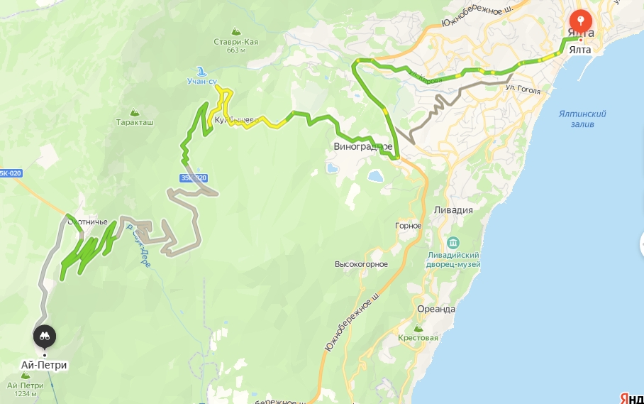 - Маршрут на машине из Ялты к вершине Ай-Петри по Бахчисарайскому шоссе