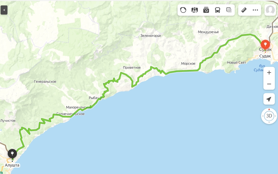 - Маршрут на машине по Крыму из Судака до Ялты через Алушту